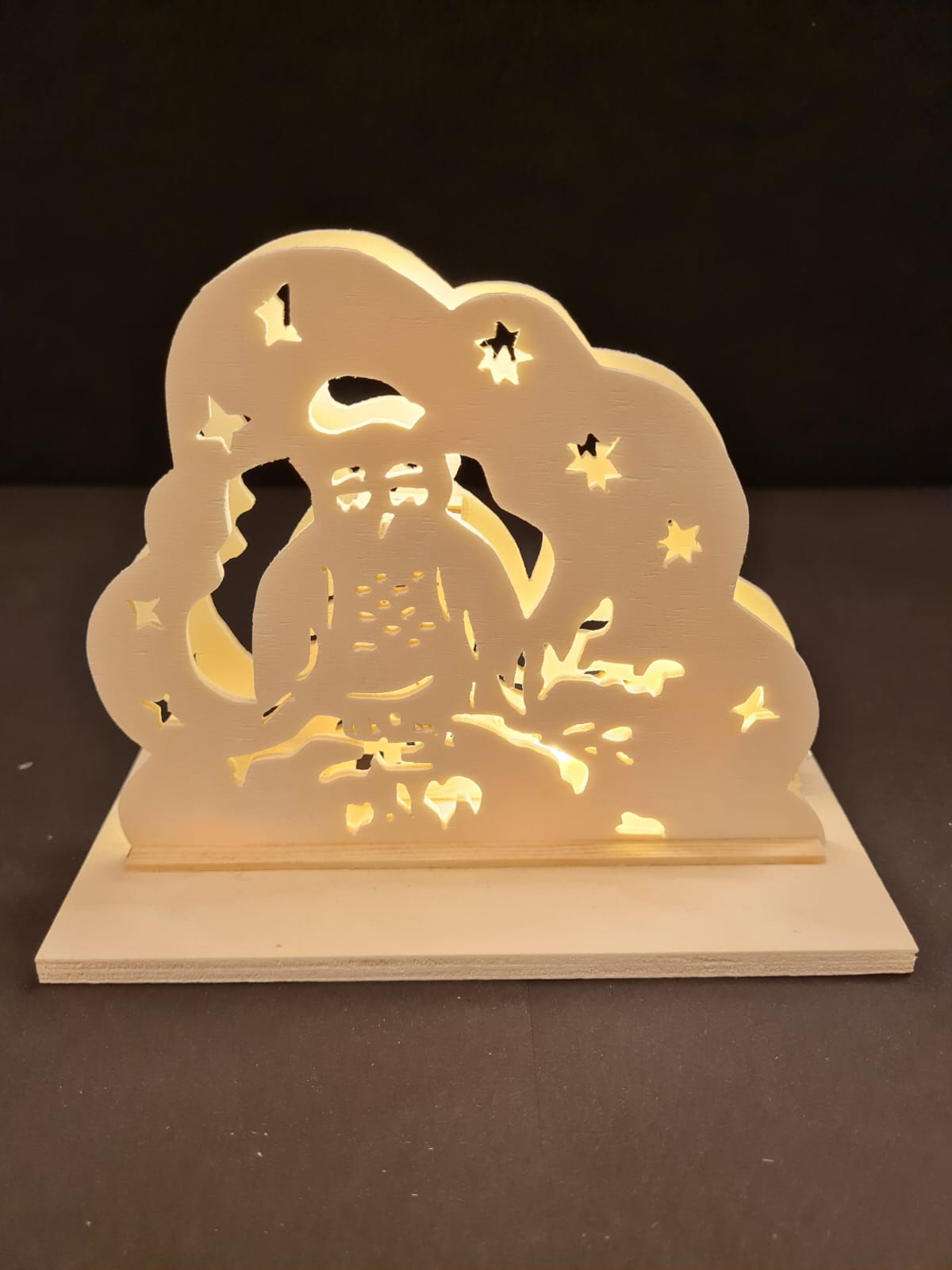 Diese handgesägte, beleuchtete Holzfigur mit einer Eule auf einem Ast ist ein stimmungsvolles Dekorationsstück für Herbst, Winter und die Weihnachtszeit. Die warmweiße Innenbeleuchtung lässt die filigranen Ausschnitte und Sternmotive sanft erstrahlen und bringt eine ruhige, gemütliche Atmosphäre in jeden Raum.