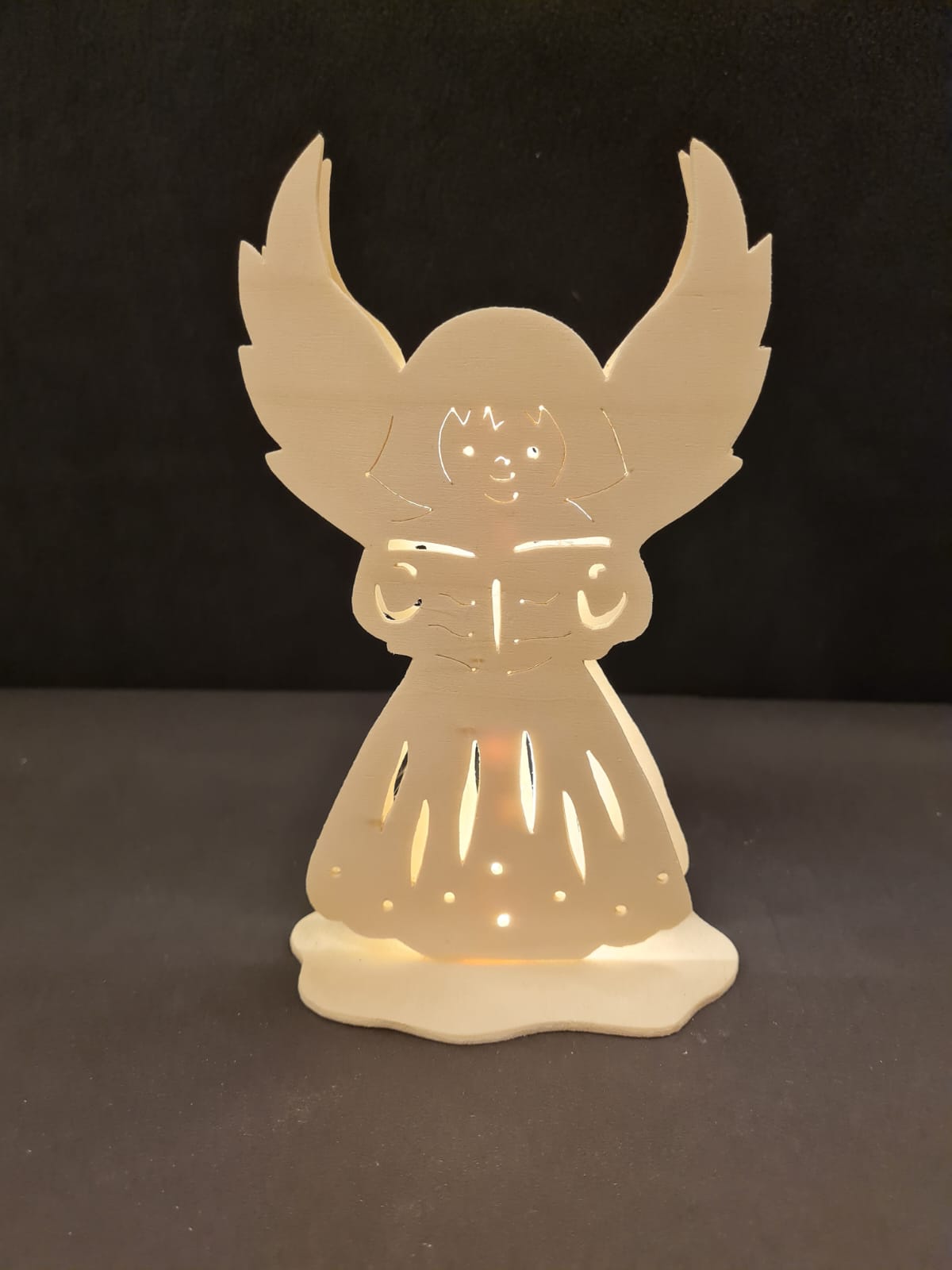 Dieser liebevoll handgefertigte Holz-Engel bringt warme, festliche Stimmung in jedes Zuhause. Die detaillierten Laubsägearbeiten, kombiniert mit der sanften Innenbeleuchtung, lassen den Engel besonders schön erstrahlen – ideal für die Adventszeit, den Weihnachtstisch oder das Fensterbrett.